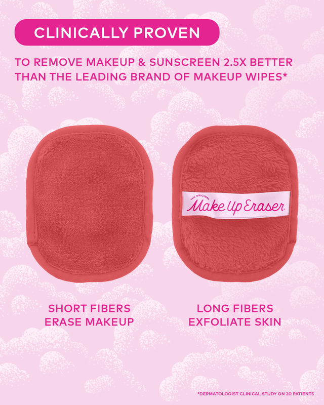 The first, the Original, the best! MakeUp Eraser is clinically proven to erase all makeup with just water (even waterproof). Powered by SmartErase Technology™ and made with the highest GSM fiber count for a soft, plush, velvety feel. Dermatologist recommended for sensitive skin. Our high-quality cloud-soft fibers last up to 200 washes, saving you money in the long run.