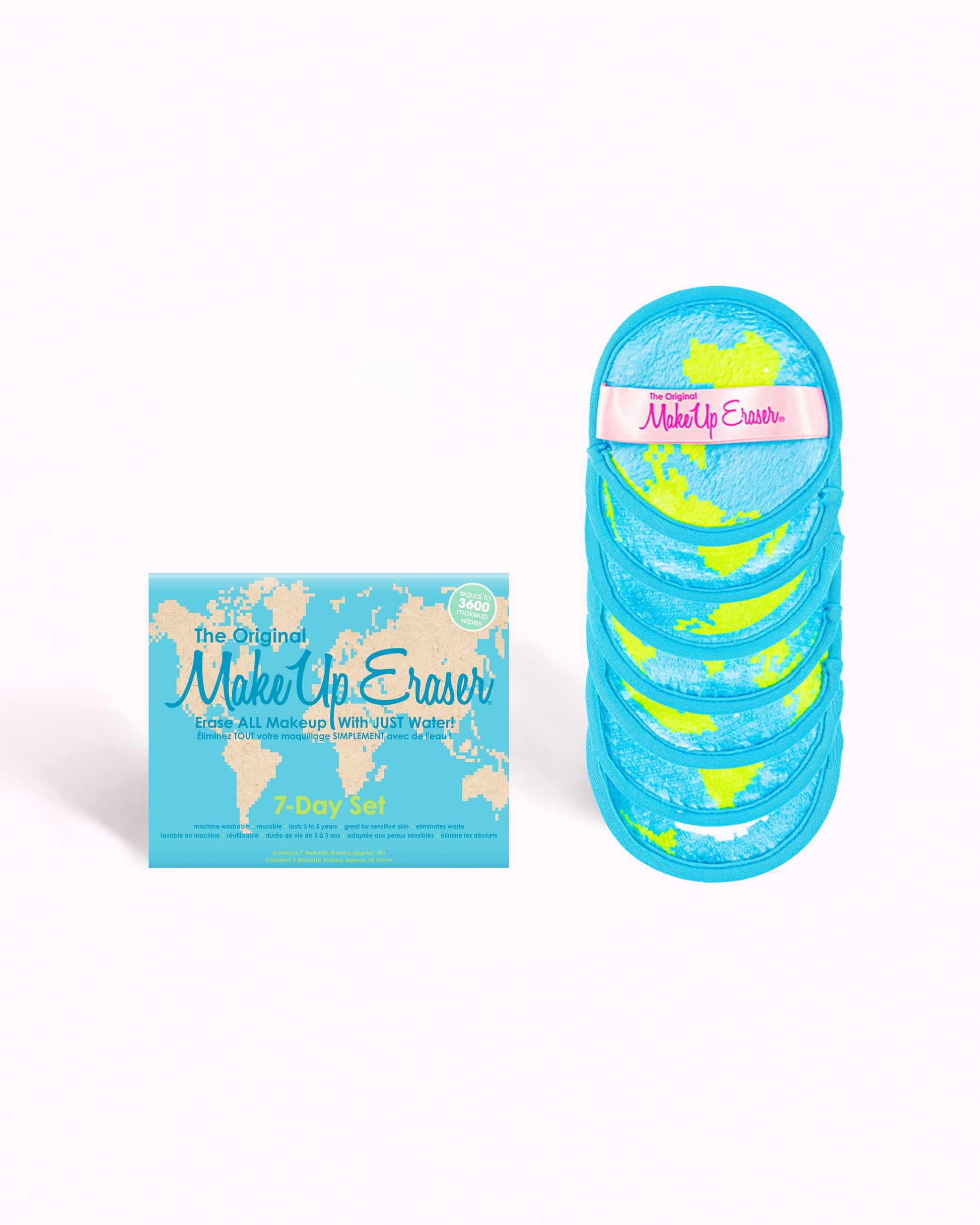 Includes Daily MakeUp Erasers, 4in round. Laundry bag included.