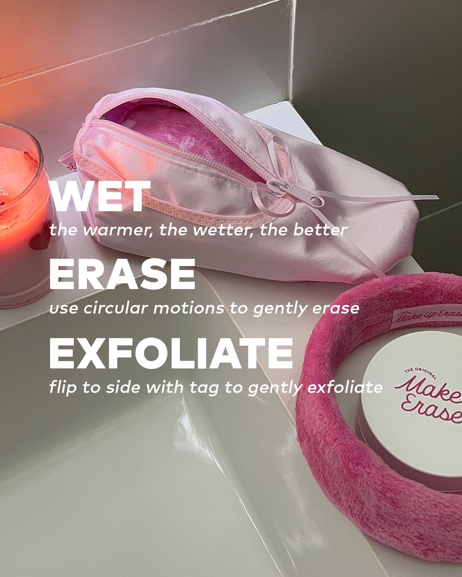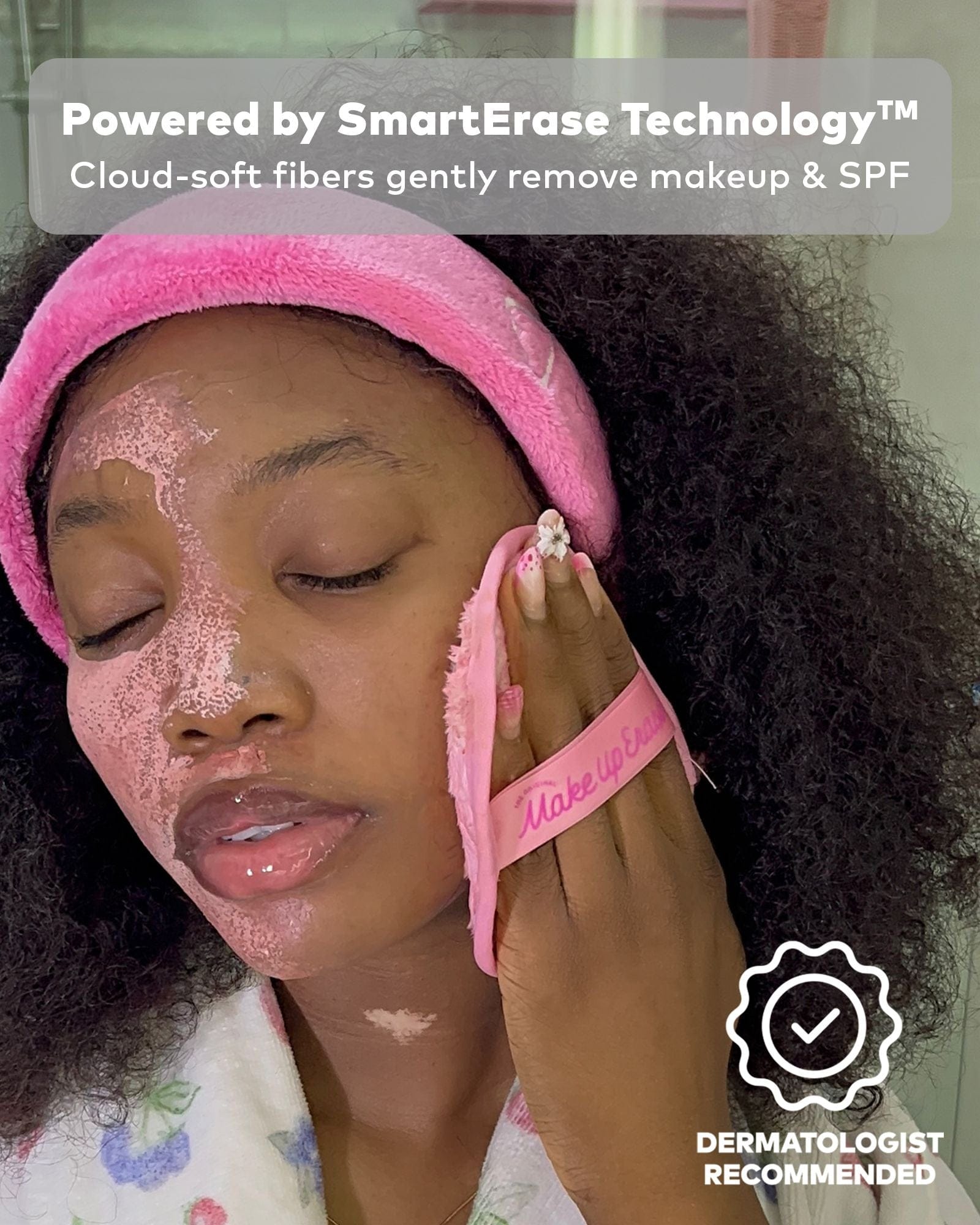 Erase all makeup with JUST WATER™ including waterproof. Our patented, water-activated, cloud-soft fibers gently & easily remove all makeup & sunscreen from pores. 2 in 1 benefit: one side erases makeup & one side exfoliates skin.