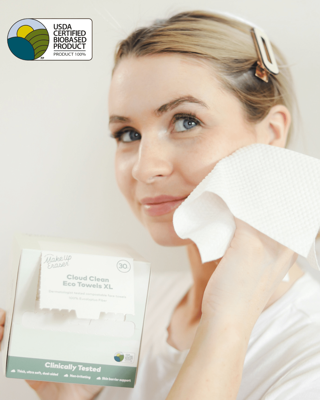 Made from 100% biodegradable* eucalyptus fiber, Cloud Clean Eco Towels are dermatologist & clinically-tested single-use towels designed to be as gentle as they are effective. Unlike traditional washcloths that can trap dirt and bacteria, these hygienic, bacteria-free towels help maintain a healthy skin barrier while reducing dryness & redness.