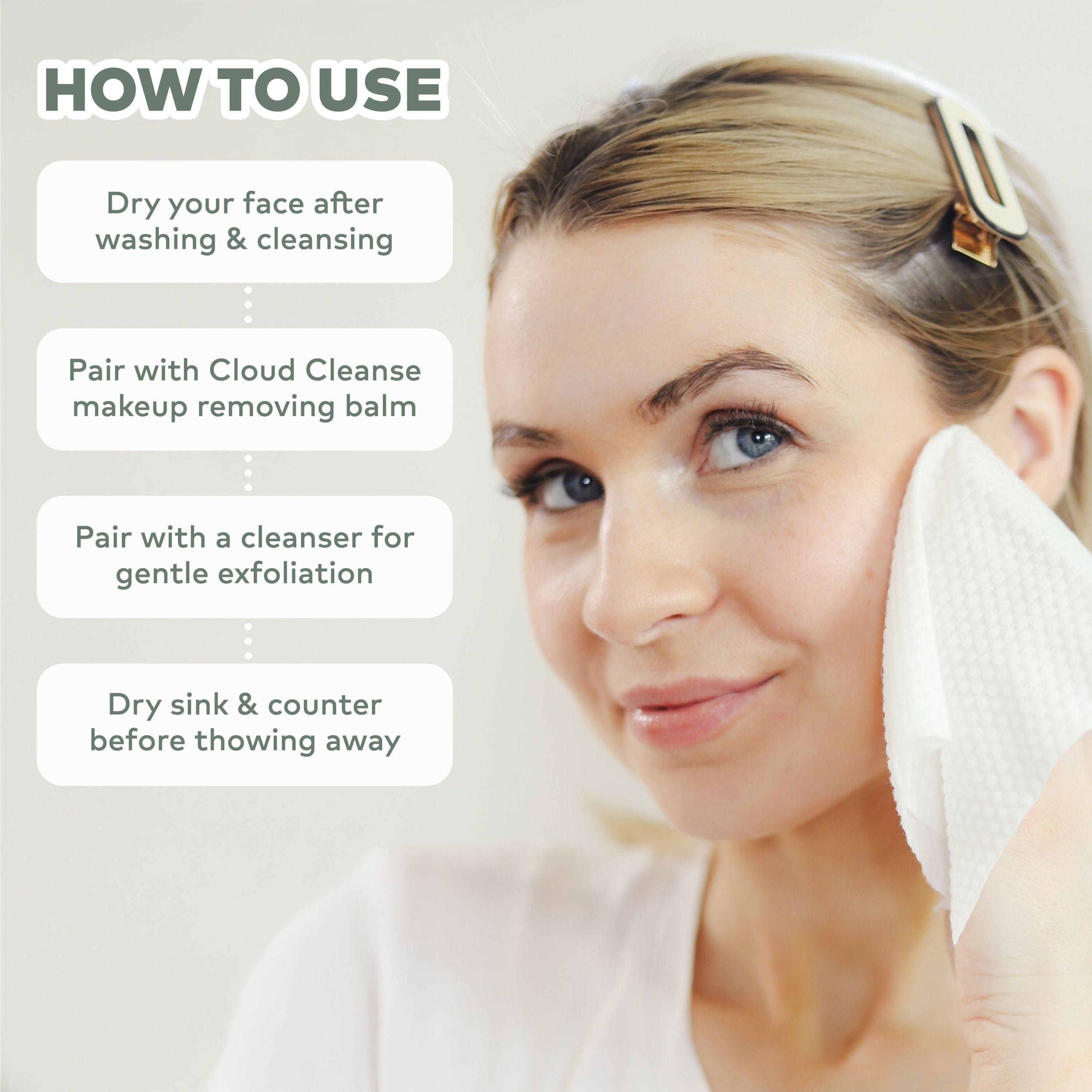 Made from 100% biodegradable* eucalyptus fiber, Cloud Clean Eco Towels are dermatologist & clinically-tested single-use towels designed to be as gentle as they are effective. Unlike traditional washcloths that can trap dirt and bacteria, these hygienic, bacteria-free towels help maintain a healthy skin barrier while reducing dryness & redness.