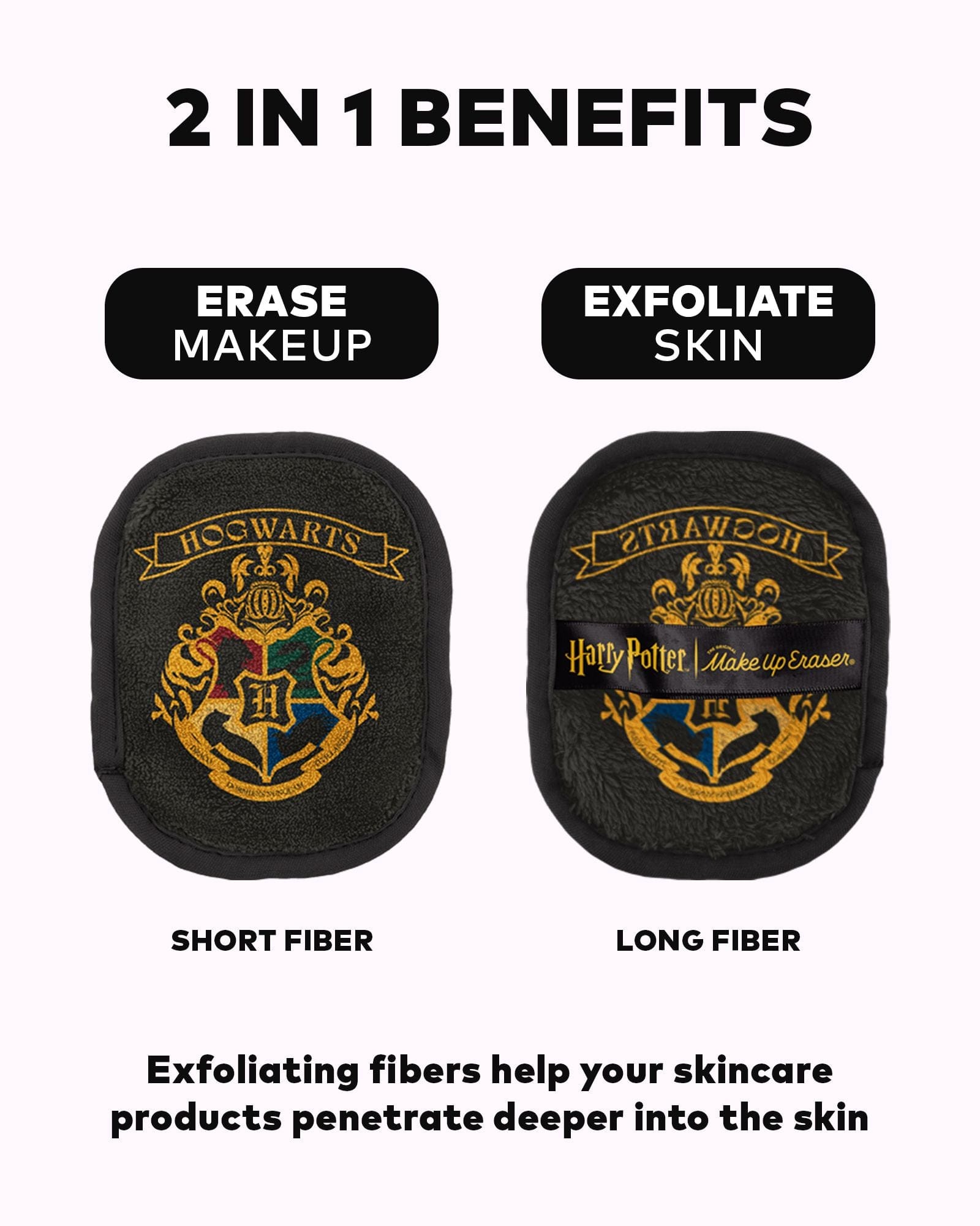 Erase all makeup with JUST WATER™ including waterproof. Our patented, water-activated, cloud-soft fibers gently & easily remove all makeup & sunscreen from pores. 2 in 1 benefit: one side erases makeup & one side exfoliates skin.