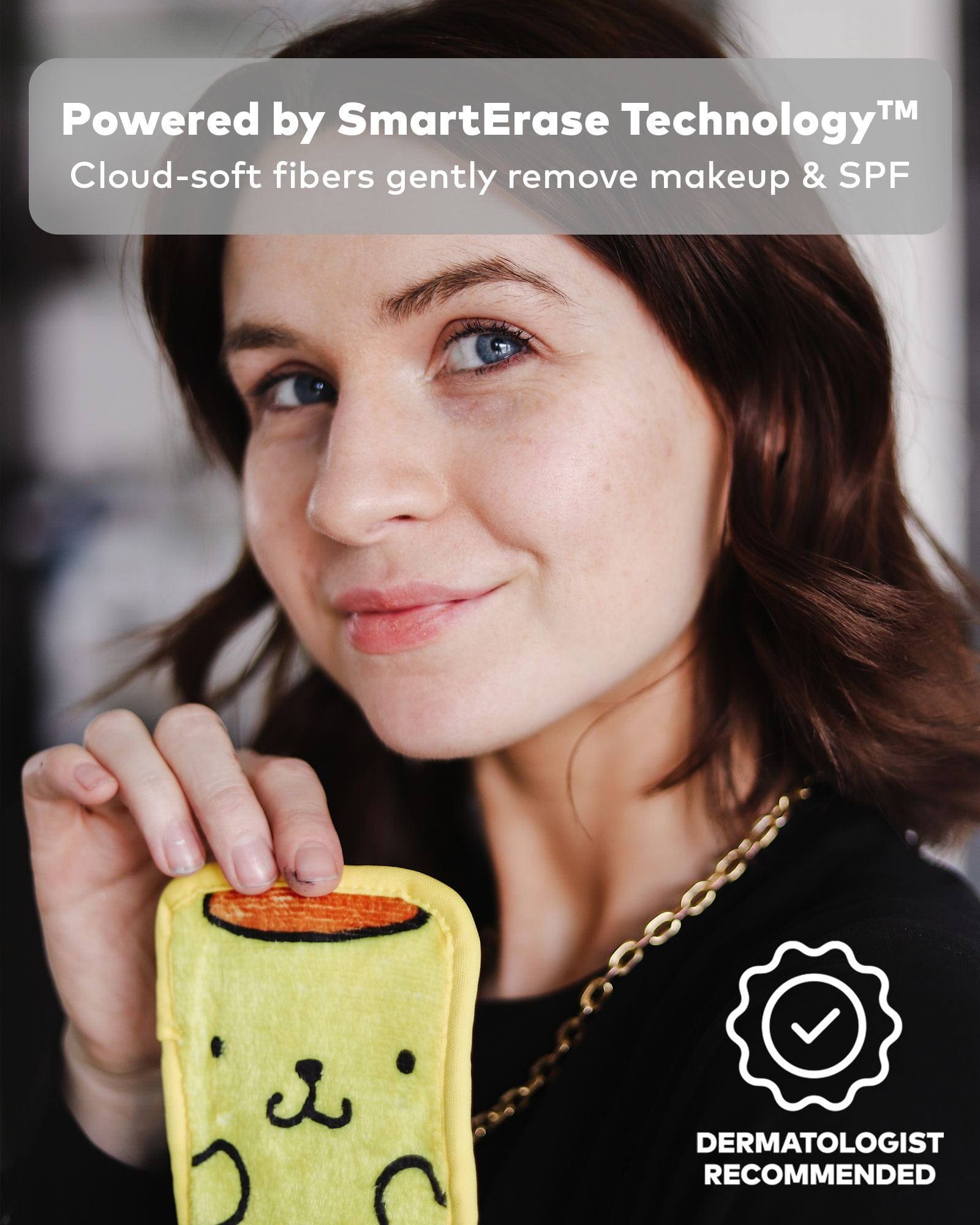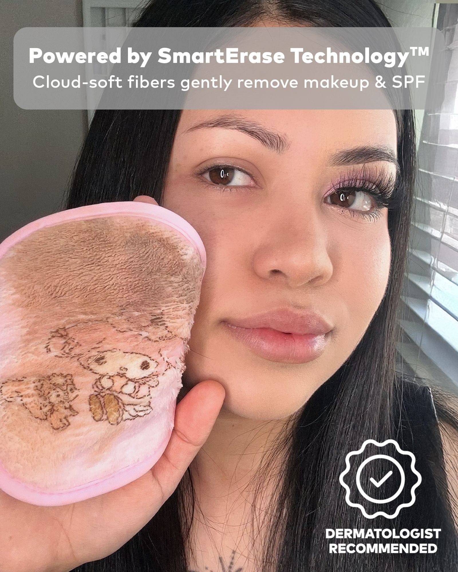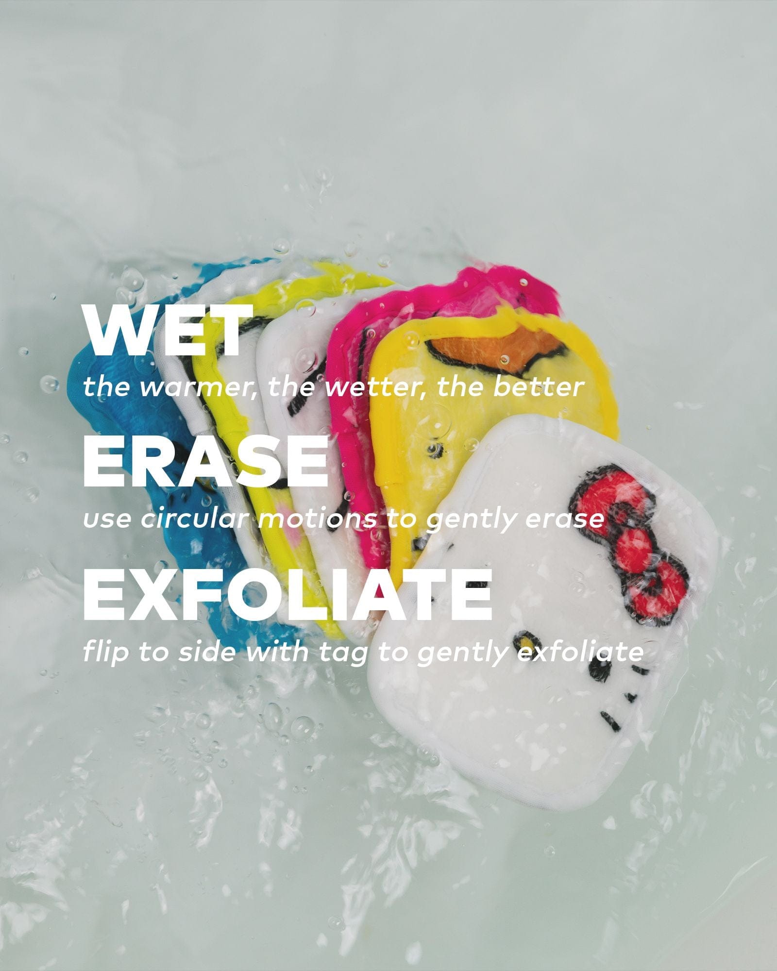Erase all makeup with JUST WATER™ including waterproof. Our patented, water-activated, cloud-soft fibers gently & easily remove all makeup & sunscreen from pores. 2 in 1 benefit: one side erases makeup & one side exfoliates skin.