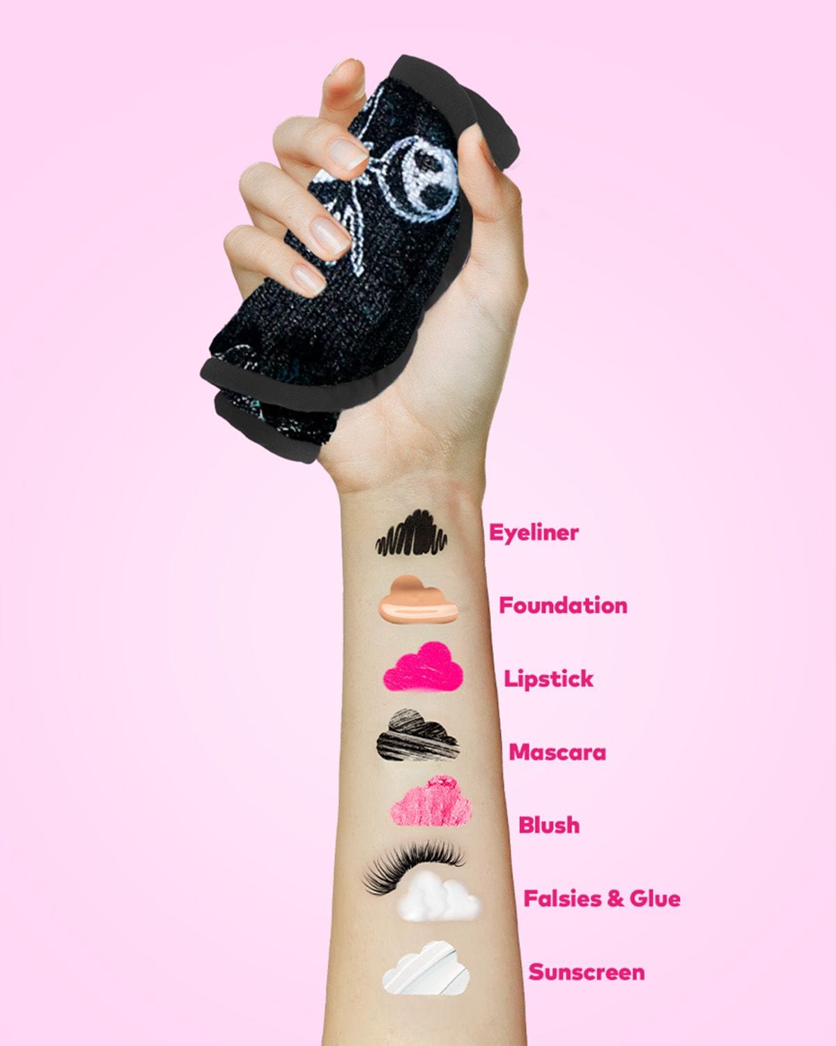 Erase all makeup with JUST WATER™ including waterproof. Our patented, water-activated, cloud-soft fibers gently & easily remove all makeup & sunscreen from pores. 2 in 1 benefit: one side erases makeup & one side exfoliates skin.