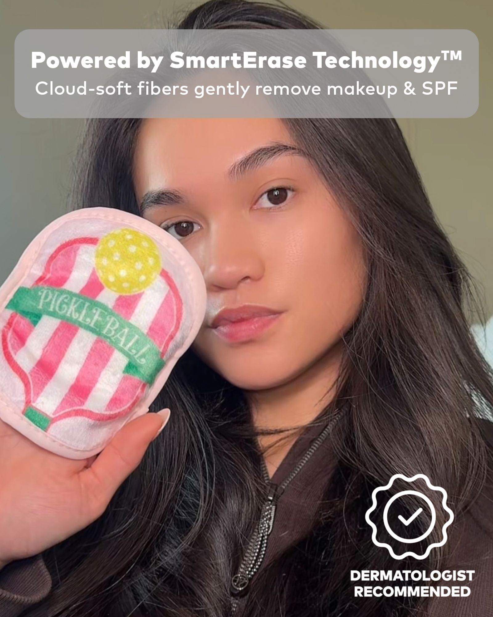 Erase all makeup with JUST WATER™ including waterproof. Our patented, water-activated, cloud-soft fibers gently & easily remove all makeup & sunscreen from pores. 2 in 1 benefit: one side erases makeup & one side exfoliates skin.